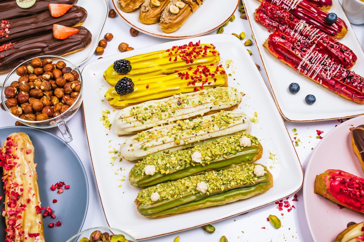 Paragaukite mūsų skaniuosius eklerus iš natūralių produktų, tikro sviesto, itin kokybiškų miltų ir ką tik iš krosnies su gardžiaja kava Illy. Asortimente turime net 46 skonių eklerus, nuo klasikinių, kaip su kavos kremu, iki egzotiškiausių - yuzu, pasiflorų ir kitų... Kasdien kepame ir siūlome apie 24 rūšis!