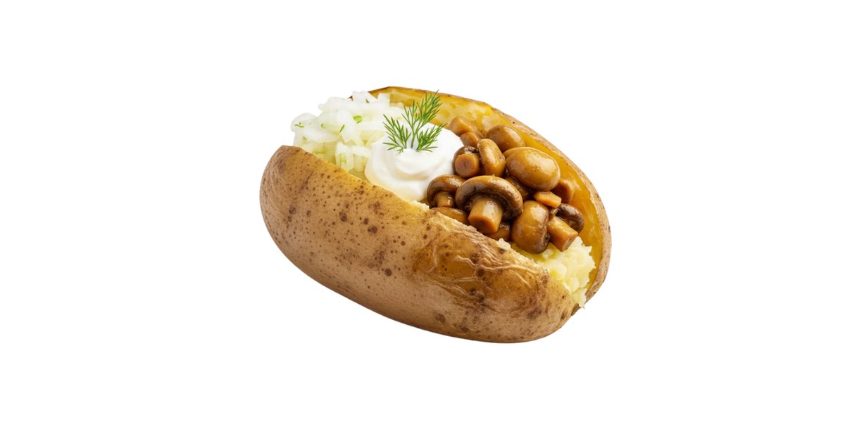 Bulvė, sviesto, sūris, dešra , jalapeno, jogurto padažas,kukurūzai, kečupas..