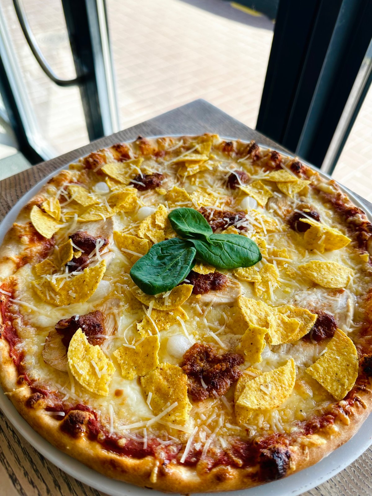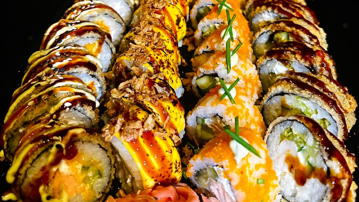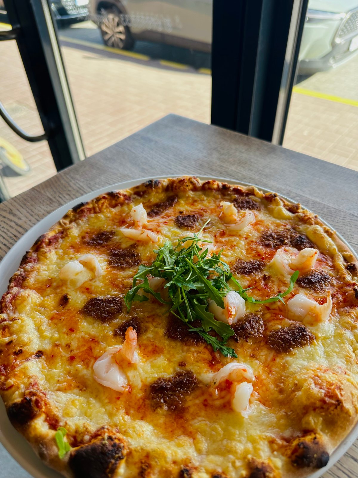 Great pizzas and sushi. All pizzas are made with mozzarella cheese