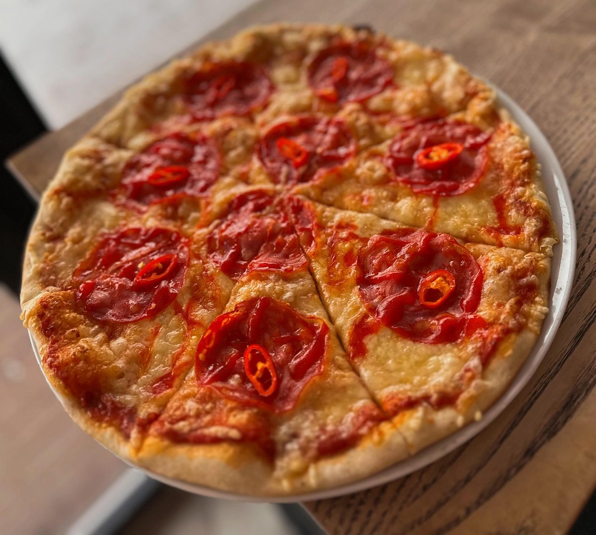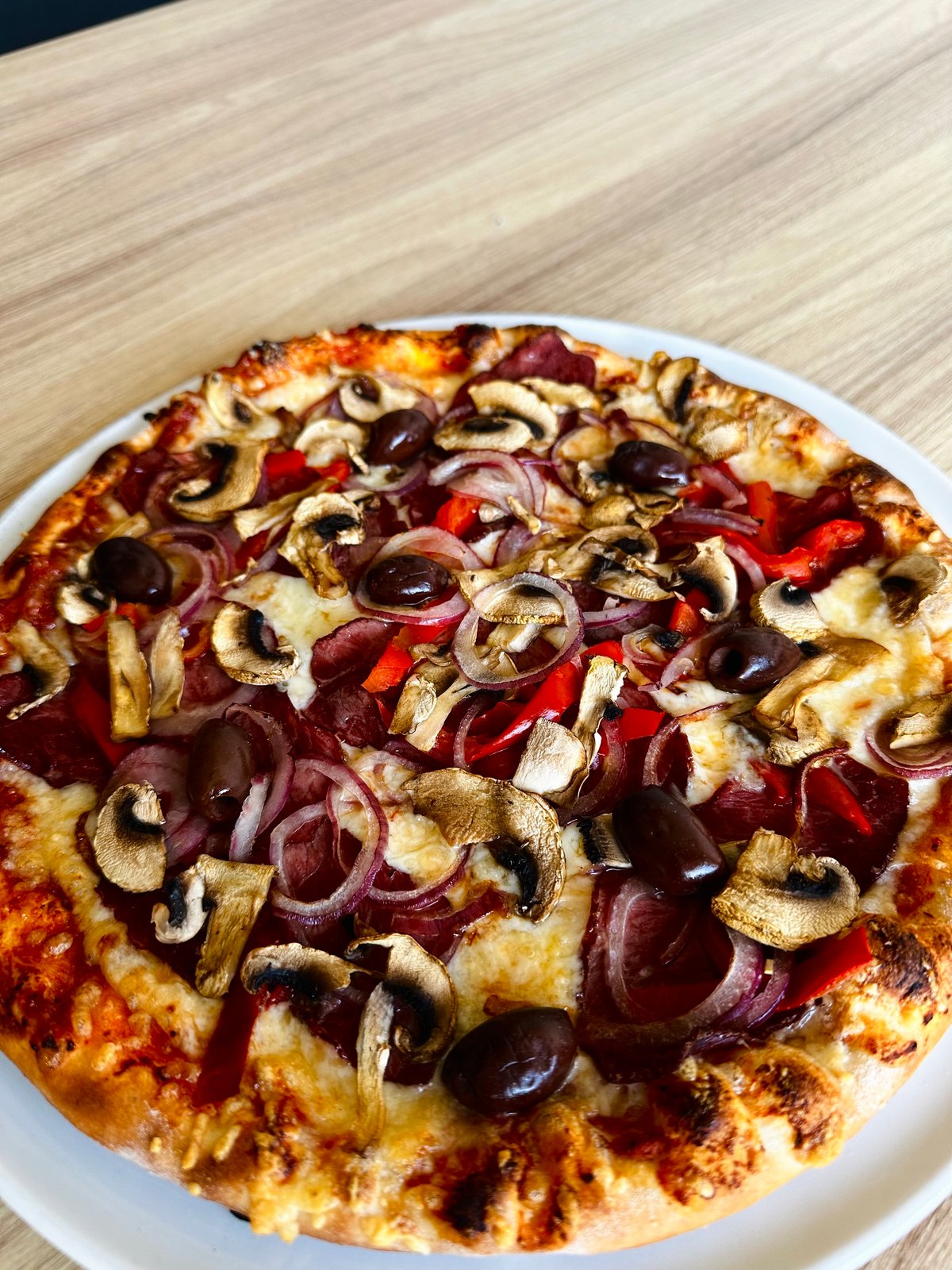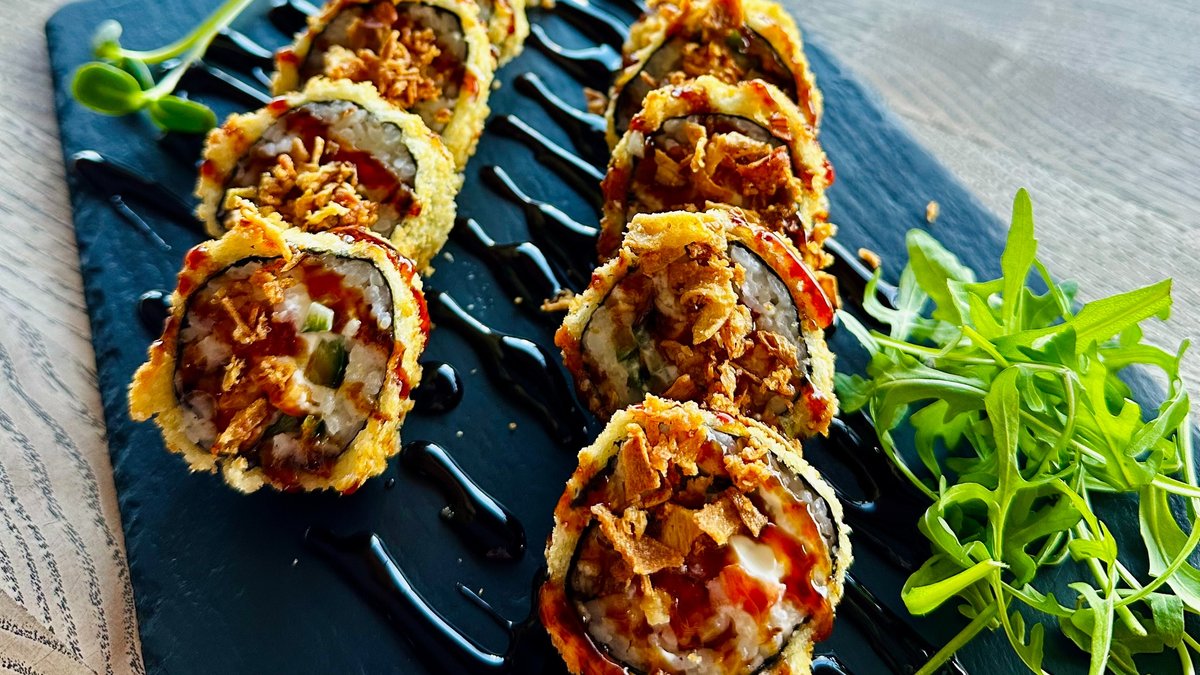 Great pizzas and sushi. All pizzas are made with mozzarella cheese