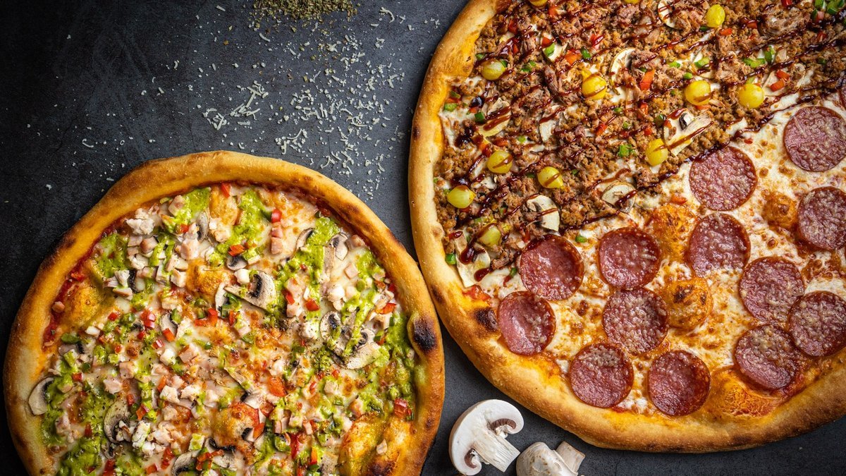 Dvi 32 cm picos, du 500 ml gėrimai, du padažai