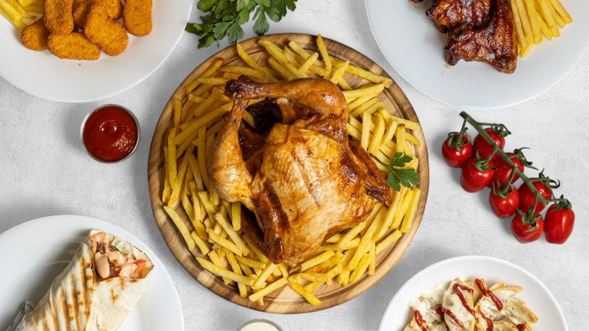 1/4 grill viščiuko + gruzdintos bulvytės + daržovės