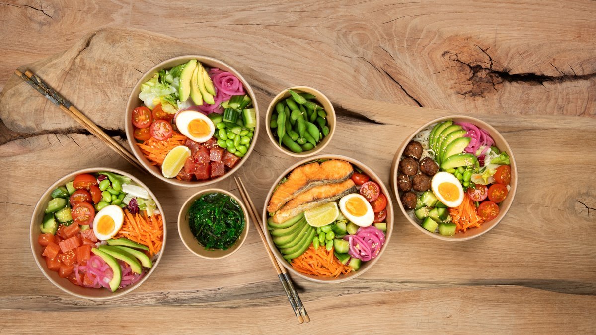 Ryškūs ir gardūs dubenėliai, pilni šviežiausių ingredientų