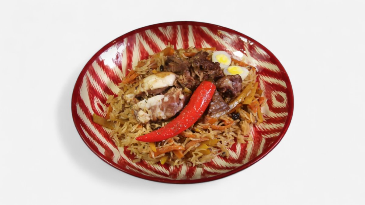 Mėsa, ryžiai basmati, morkos, morkos geltonos, kiaušiniai, čili pipiras raudoni, avinžirniai, juodieji pipirai, kuminai, svogunai