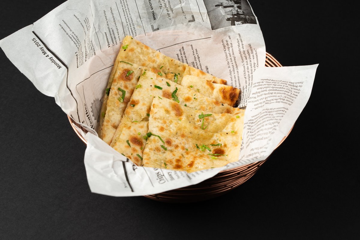 Indiškas duonos paplotėlis, pagardintas šviežiais česnakais