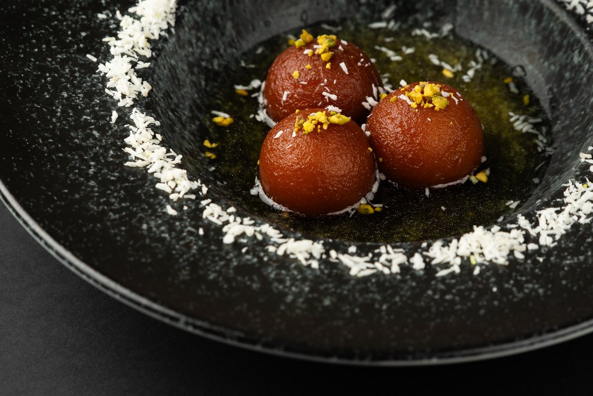 Purios rusvos spurgytės, išmirkytos sirupe, tradicinis Indiškas desertas