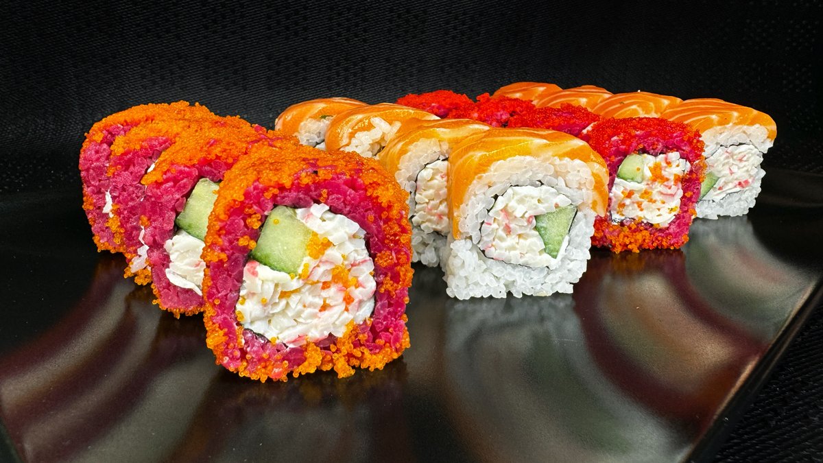 8 vnt. Rock it, 8 vnt. California, 8 vnt. Special Philadelphia, 8 vnt. Sunrise *Ikrų spalva gali skirtis nuo nurodytos nuotraukoje