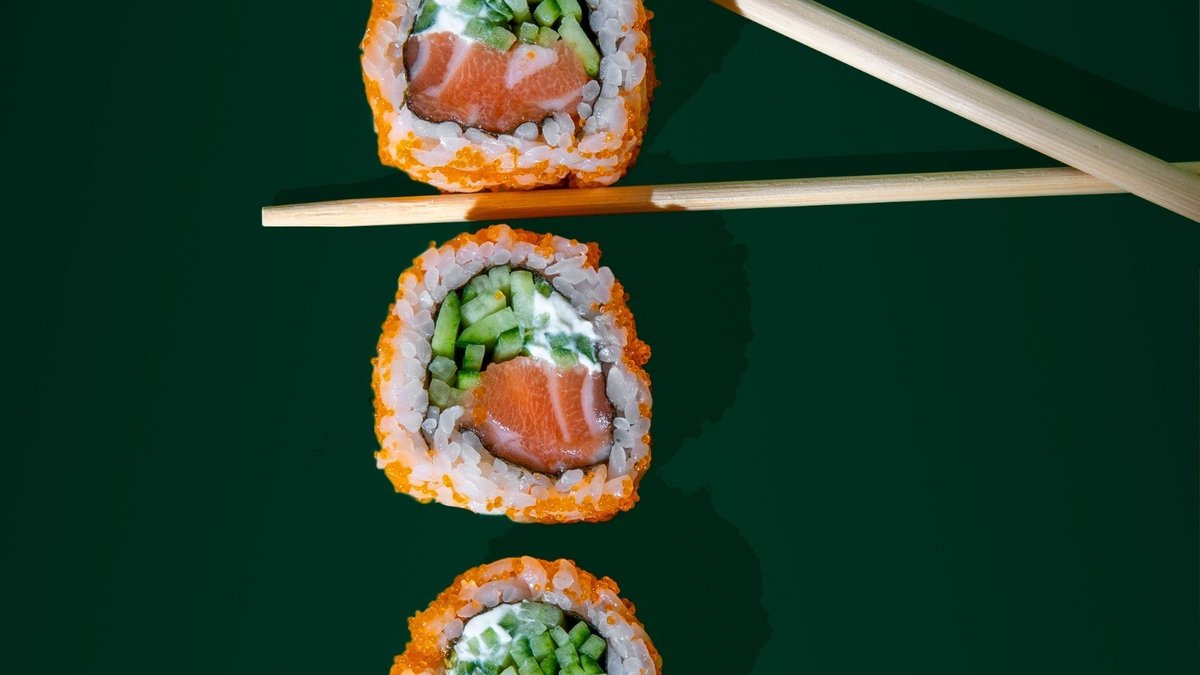 Lašiša, agurkas, Filadelfijos sūris, masago ikrai