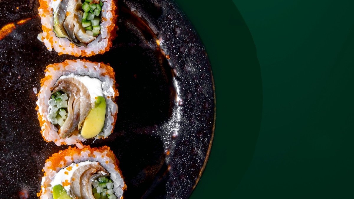 Ungurys, avokadas, agurkas, Filadelfijos sūris, masago ikrai