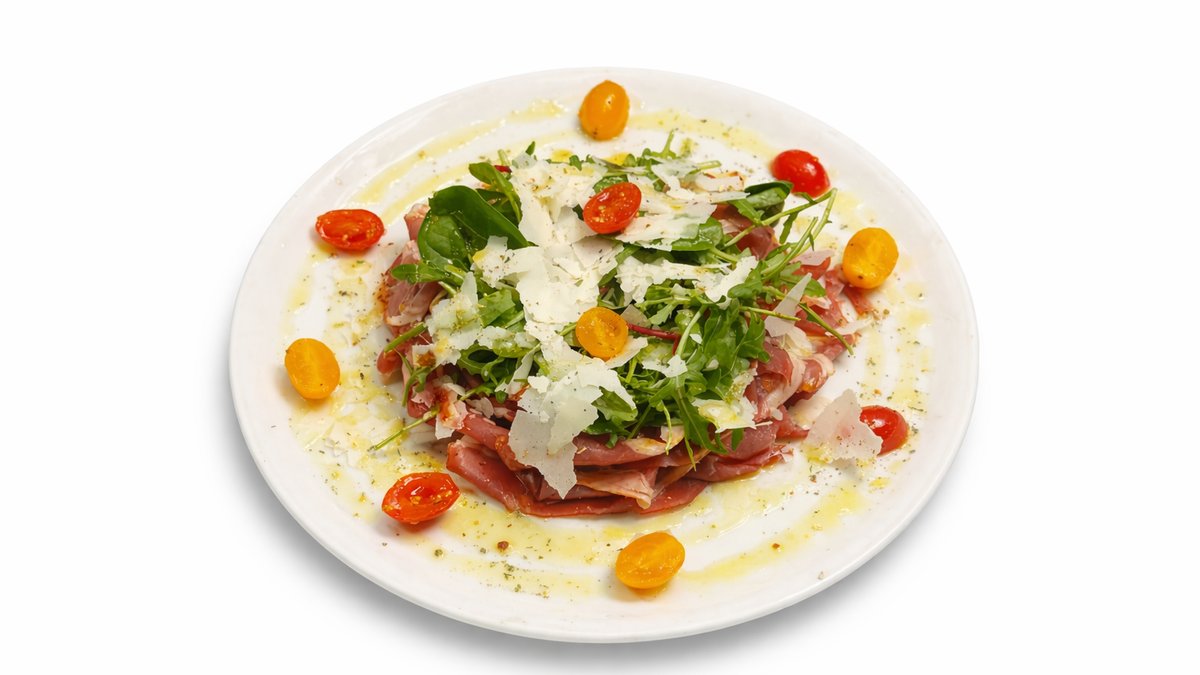 Itališkos salotos, jautienos carpaccio pomidoriukai, Parmigiano sūris , (patiekiama su focaccia)