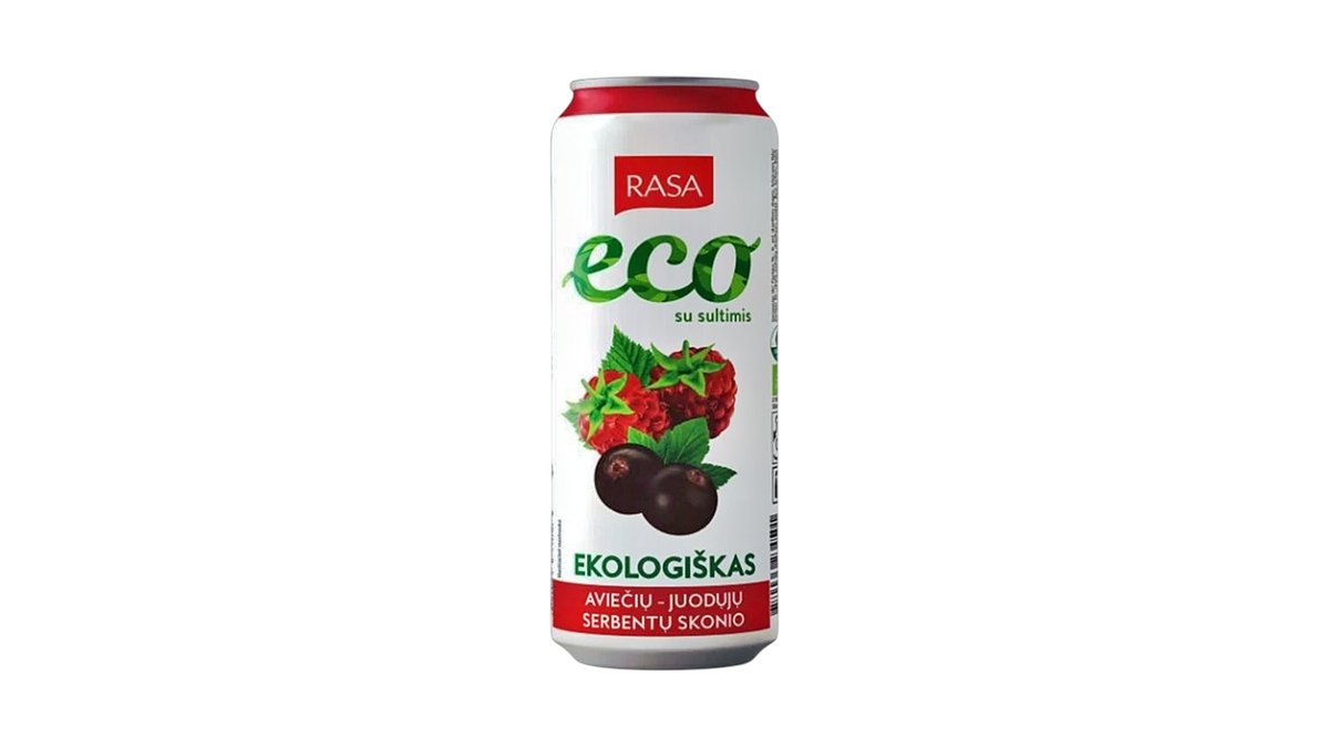 Ekologiškas aviečių ir juodųjų serbentų skonio gazuotas gaivusis gėrimas su sultimis, 0.5l RASA ECO