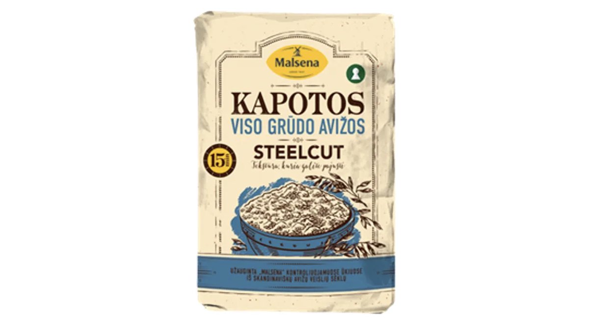 MALSENA viso grūdo kapotos avižos STEEL CUT oats 1,2 kg