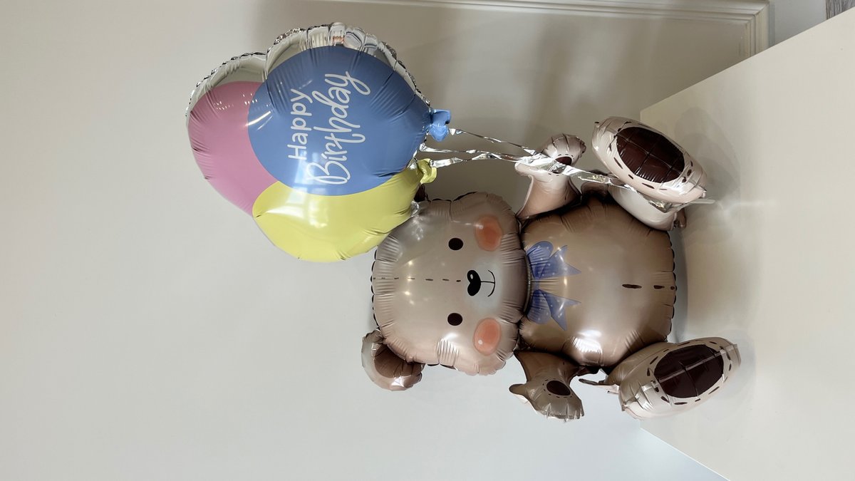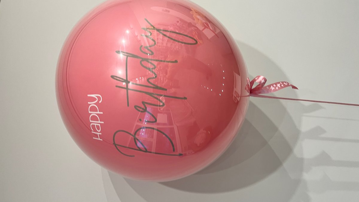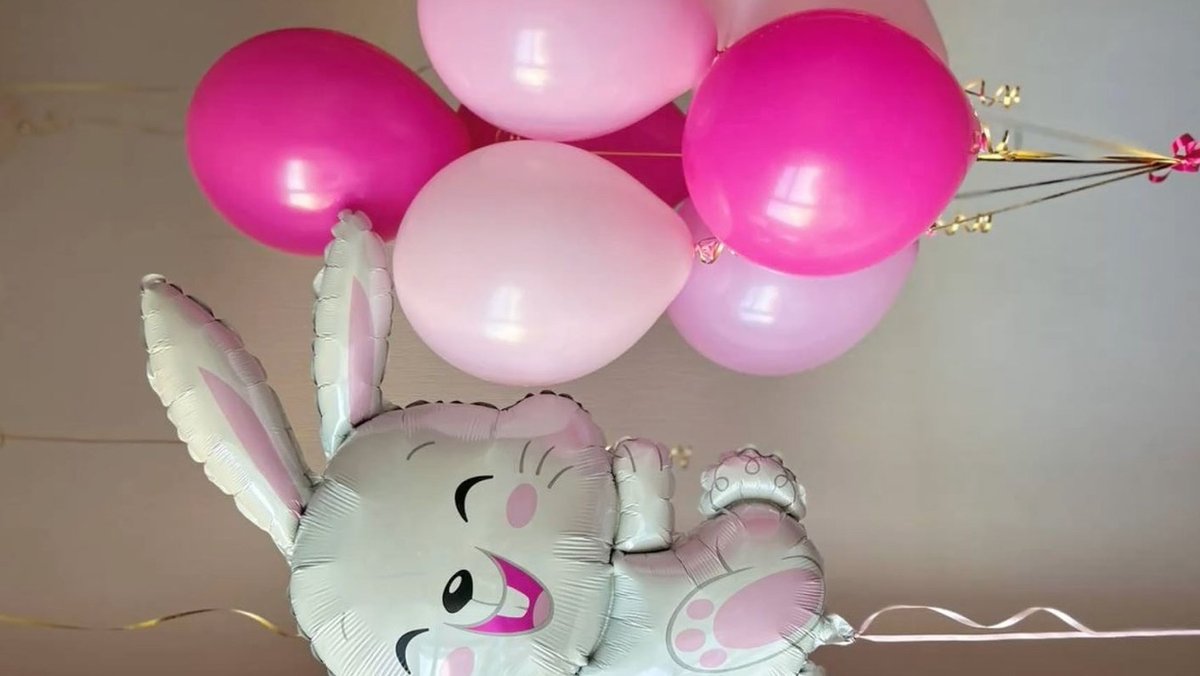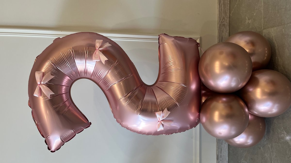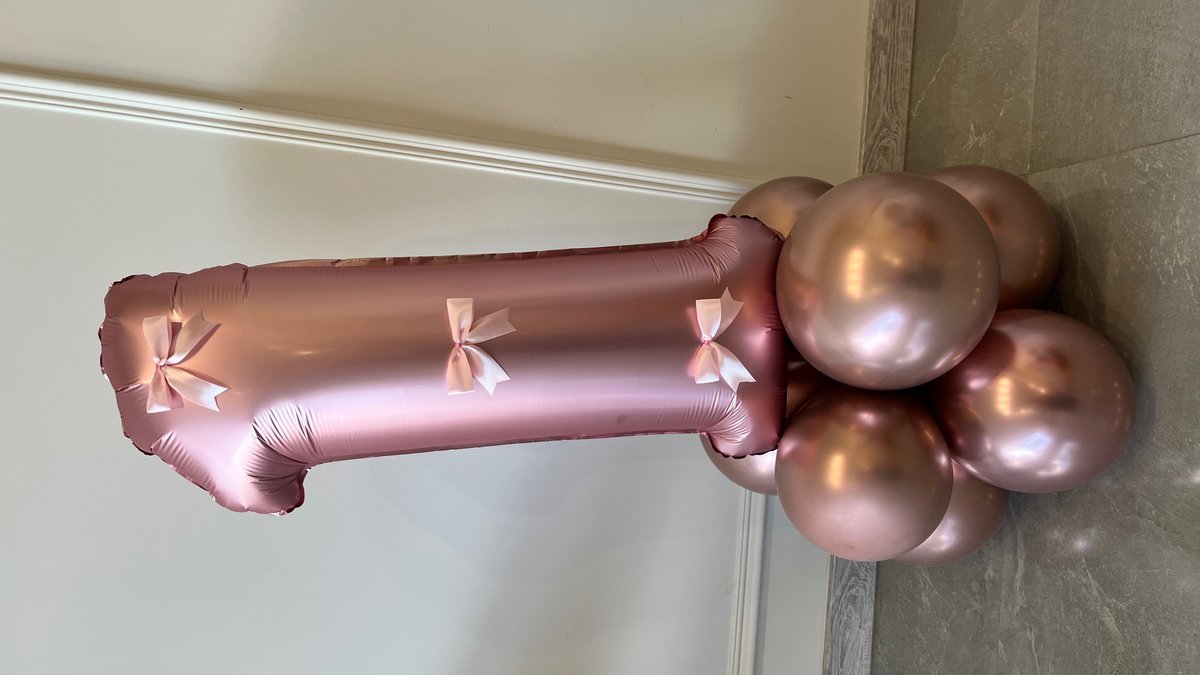 Rožinis skaičius 1 ant balionų, pripūstas su oru