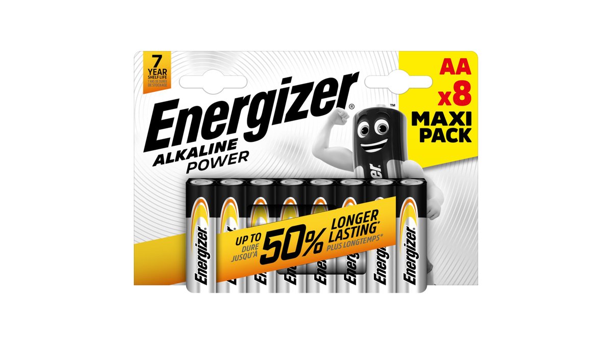 Šarminės baterijos ENERGIZER Power Alk. AA, 8 vnt