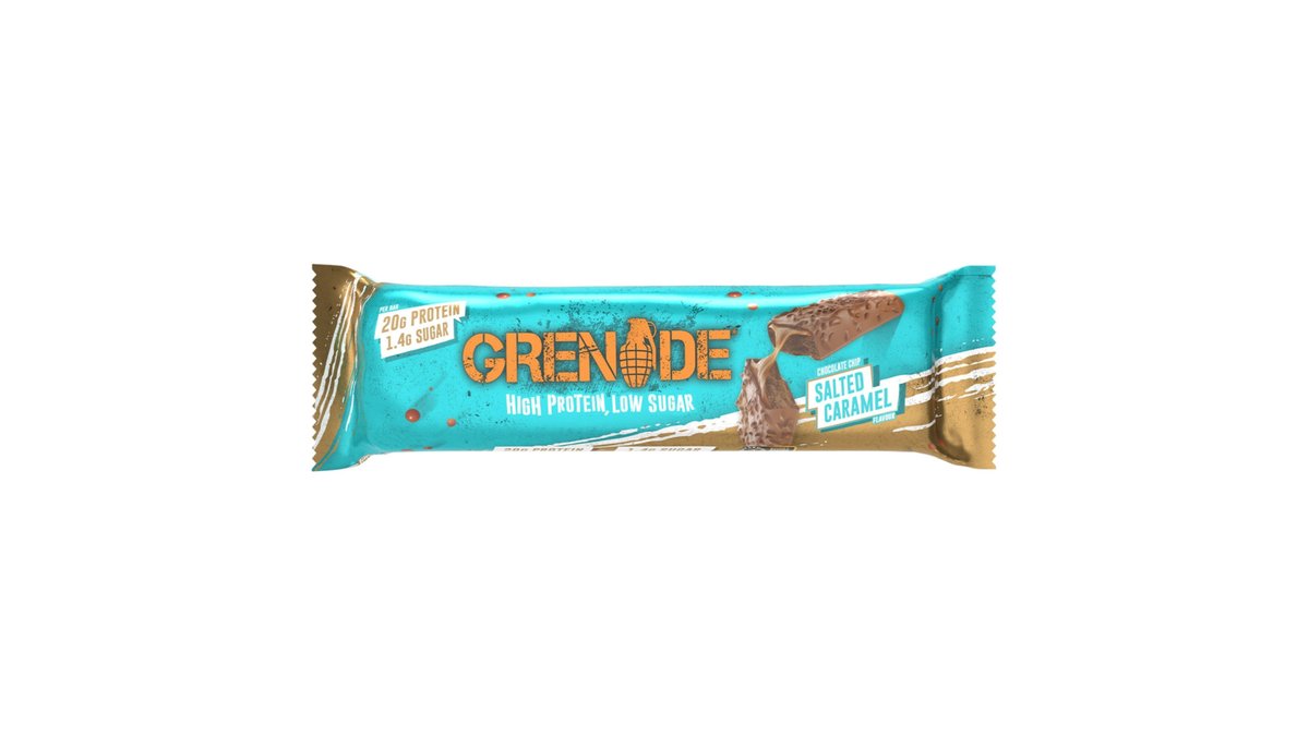Sūdytos karamelės skonio baltyminis batonėlis su šokolado gabaliukais pieniškame šokolade, su saldikliais GRENADE, 60 g