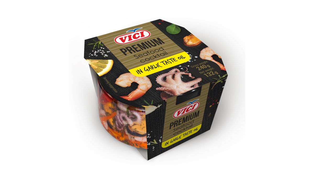 Jūrų gėrybių kokteilis česnakiniame aliejuje, VIČI 240 g