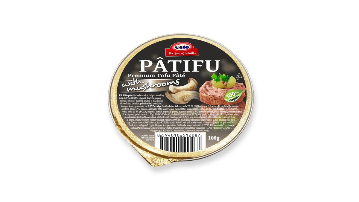 Augalinės kilmės užtepėlė su grybais VETO PATIFU, 100 g