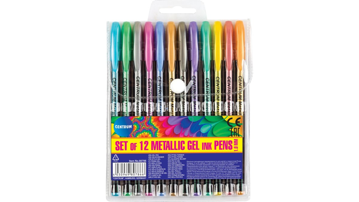 Blizgantys gelio rašikliai CENTRUM, 12 spalvų, 1 mm, BS25