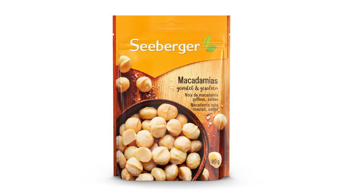 Skrudinti sūdyti makadamijų riešutai SEEBERGER, 80 g