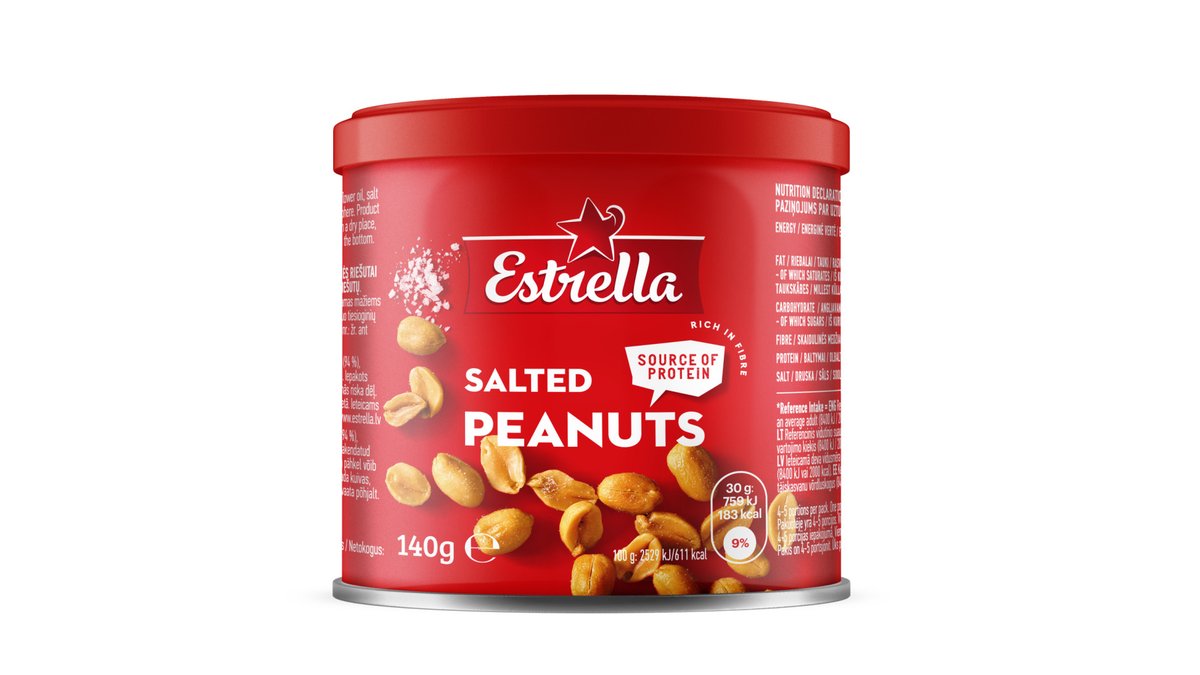 Kepinti žemės riešutai su druska, ESTRELLA, 140g