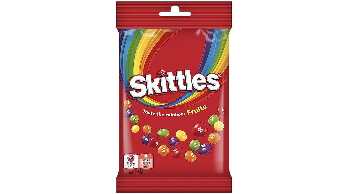 Vaisių skonio kramtomieji saldainiai traškiame cukraus glajuje SKITTLES FRUIT, 95 g