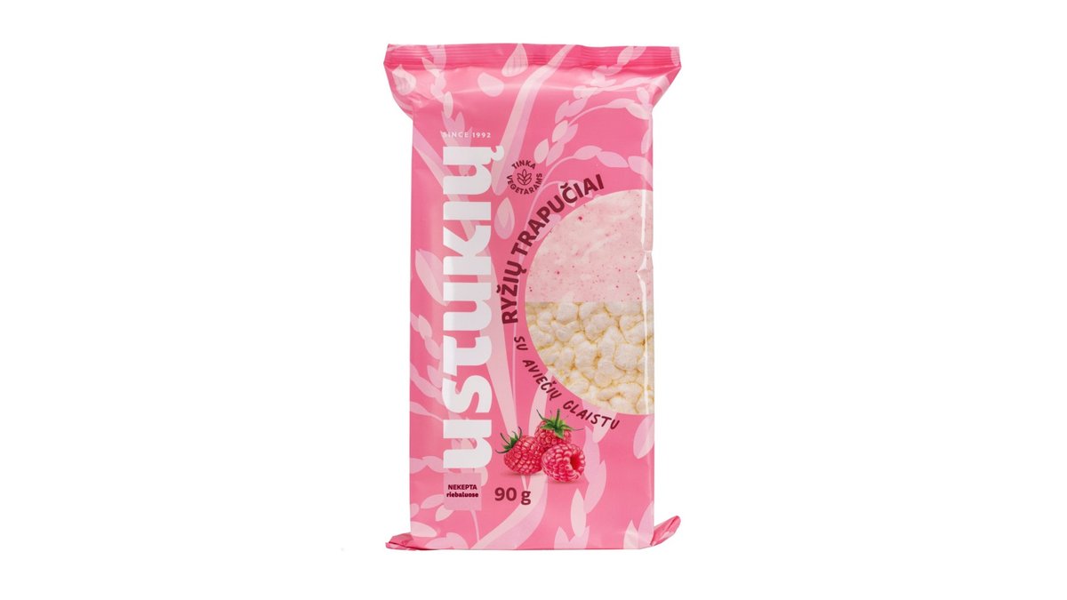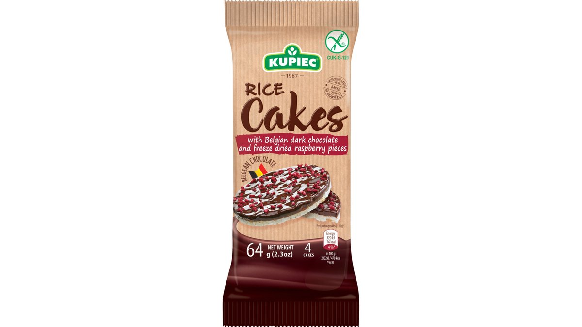 Ryžių trapučiai su belgišku šokoladu ir liofilizuotų aviečių gabalėliais KUPIEC, 70 g
