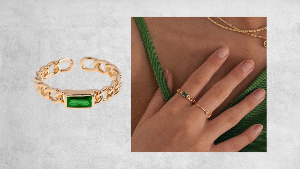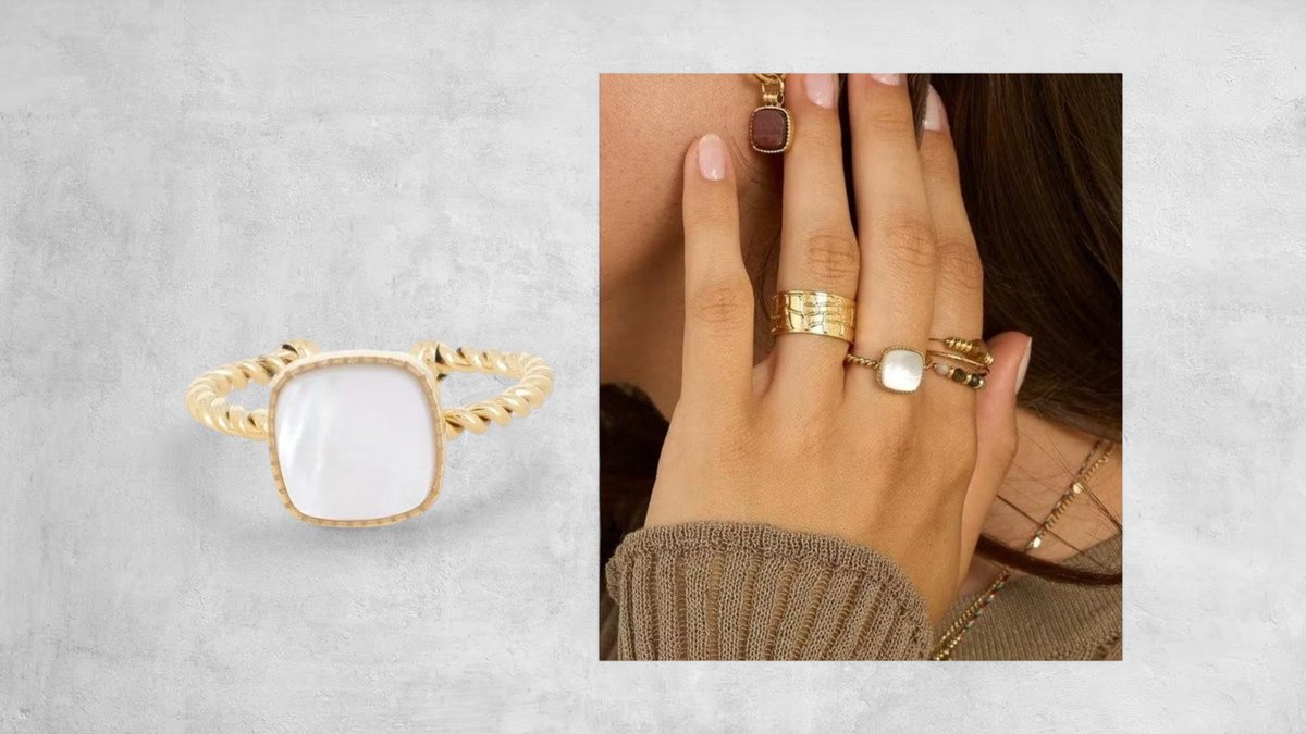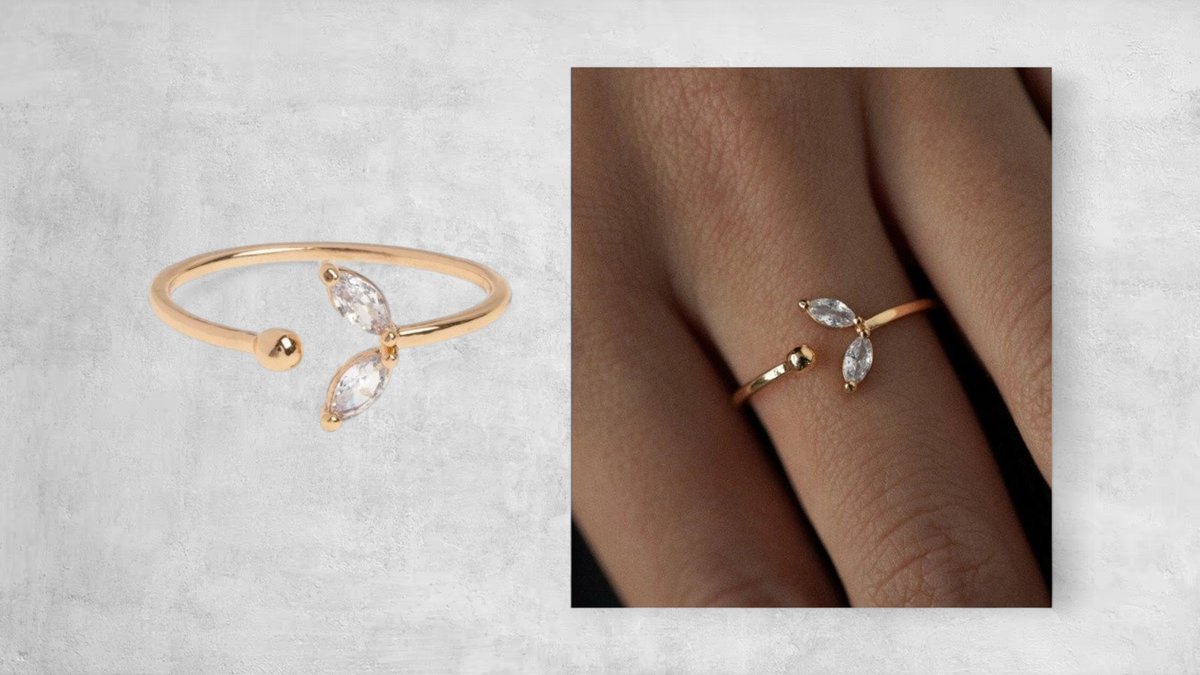 Žiedas su mėnuliu ir kristalu, aukso spalvos