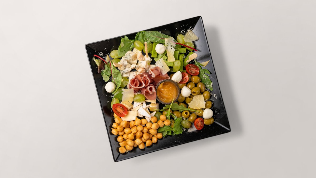 Maisījums no sieriem (5 veidi), žāvētas aprikozes, medus, balzamiko mērce, vīnogas, garšaugi