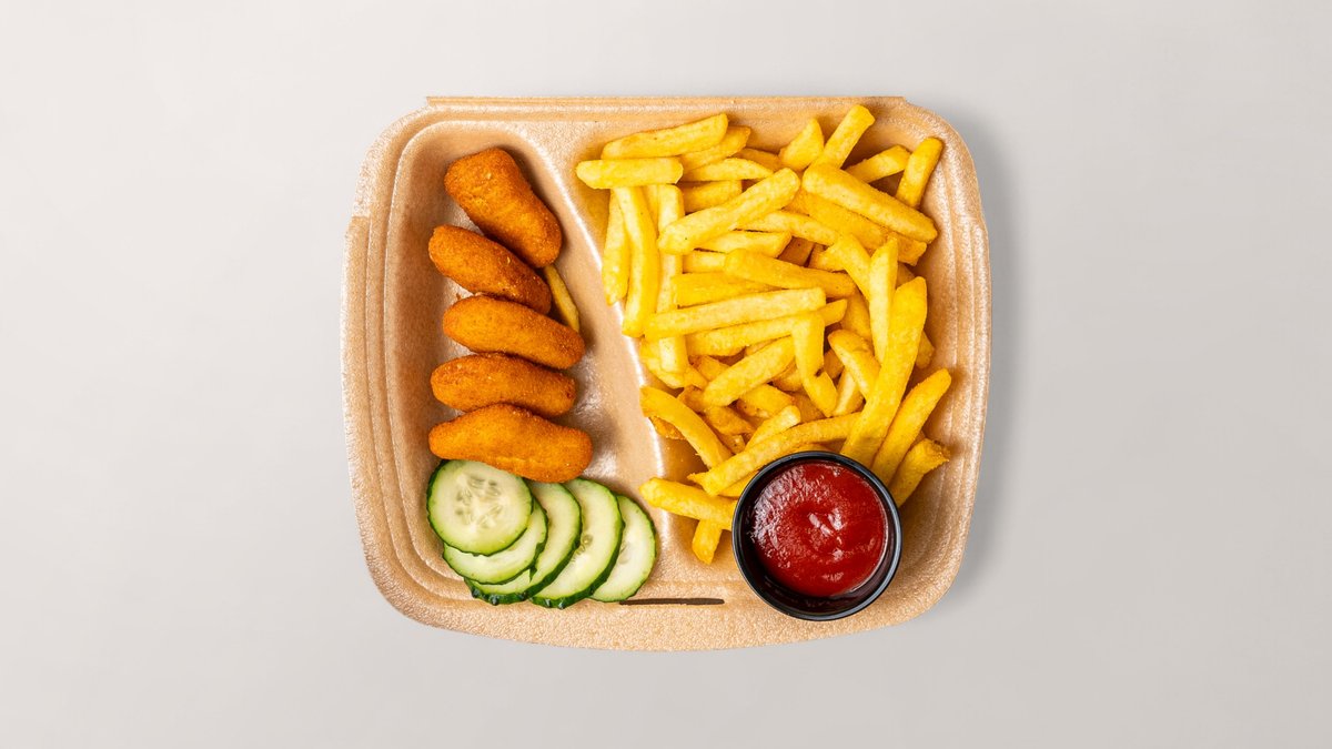 Vistas nageti ar kartupeļiem frī un tomātu mērci