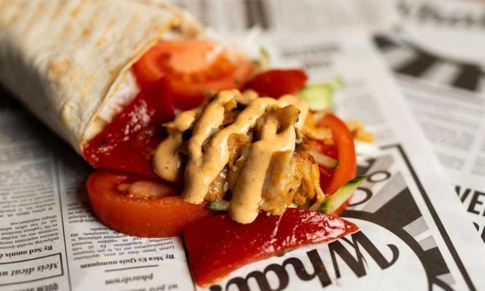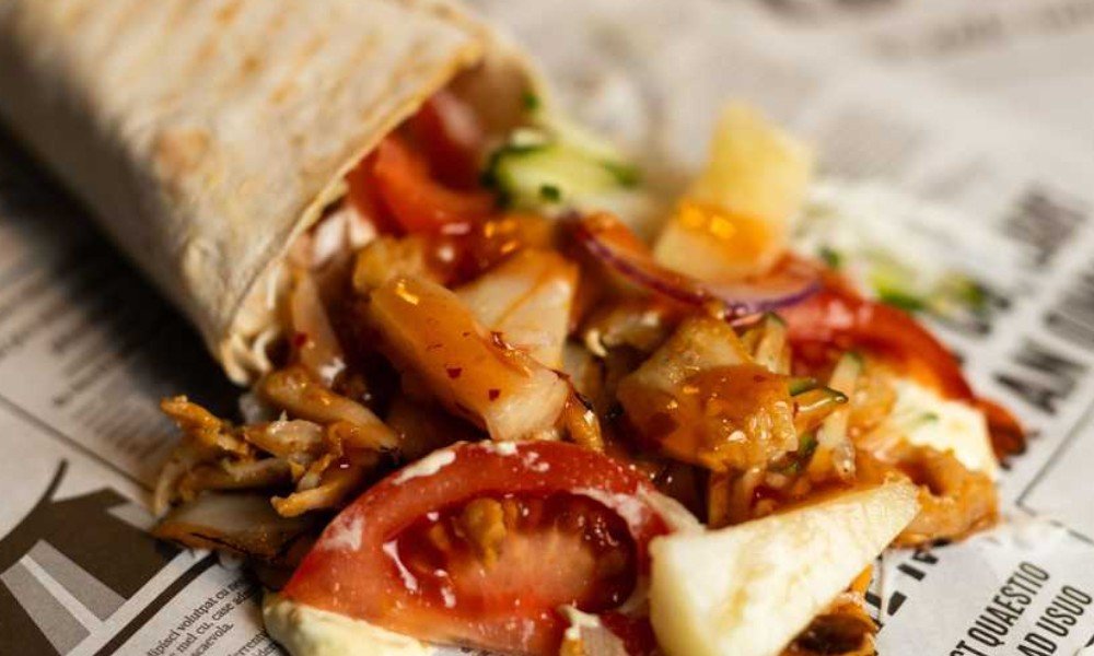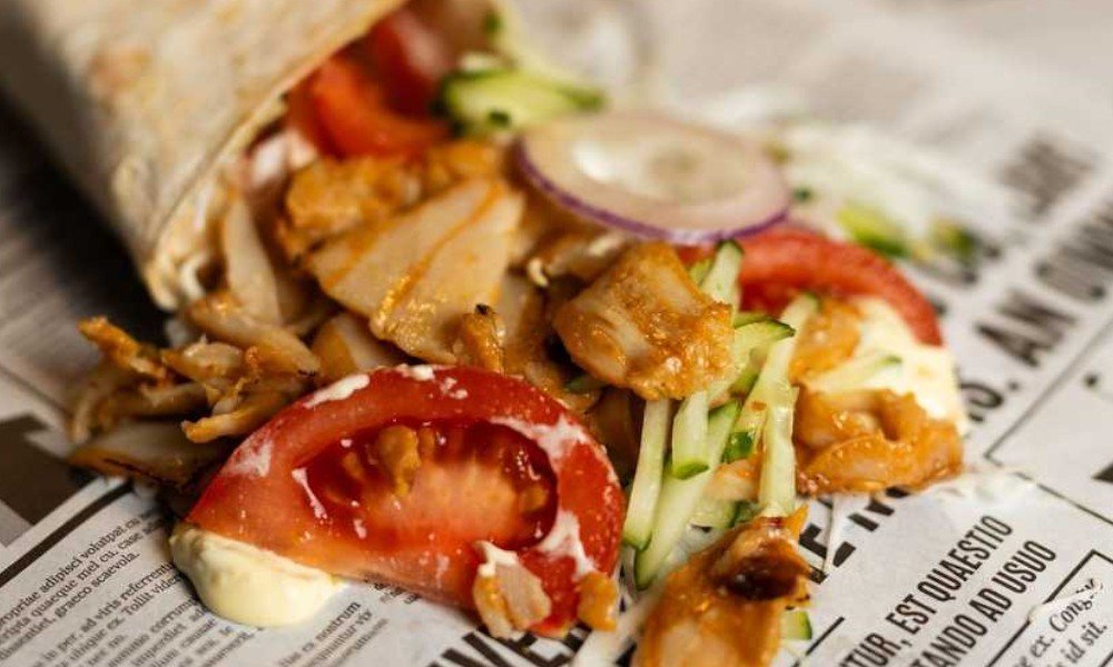 Vistas kebaba gaļa, pīta maize, tomāti, gurķis,sīpoli,baltie kaposti,sarkanie kāposti,mērce pēc izvēles