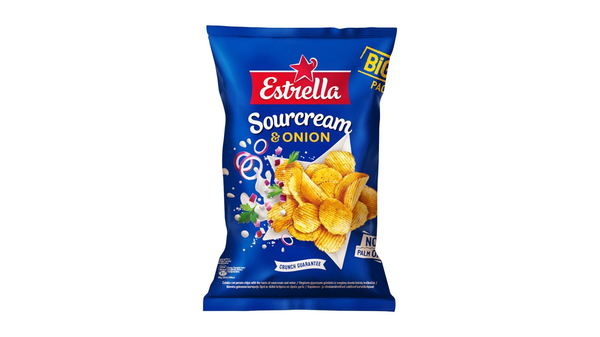 Estrella čipsi ar lauku krējuma un sīpolu garšu, 180g