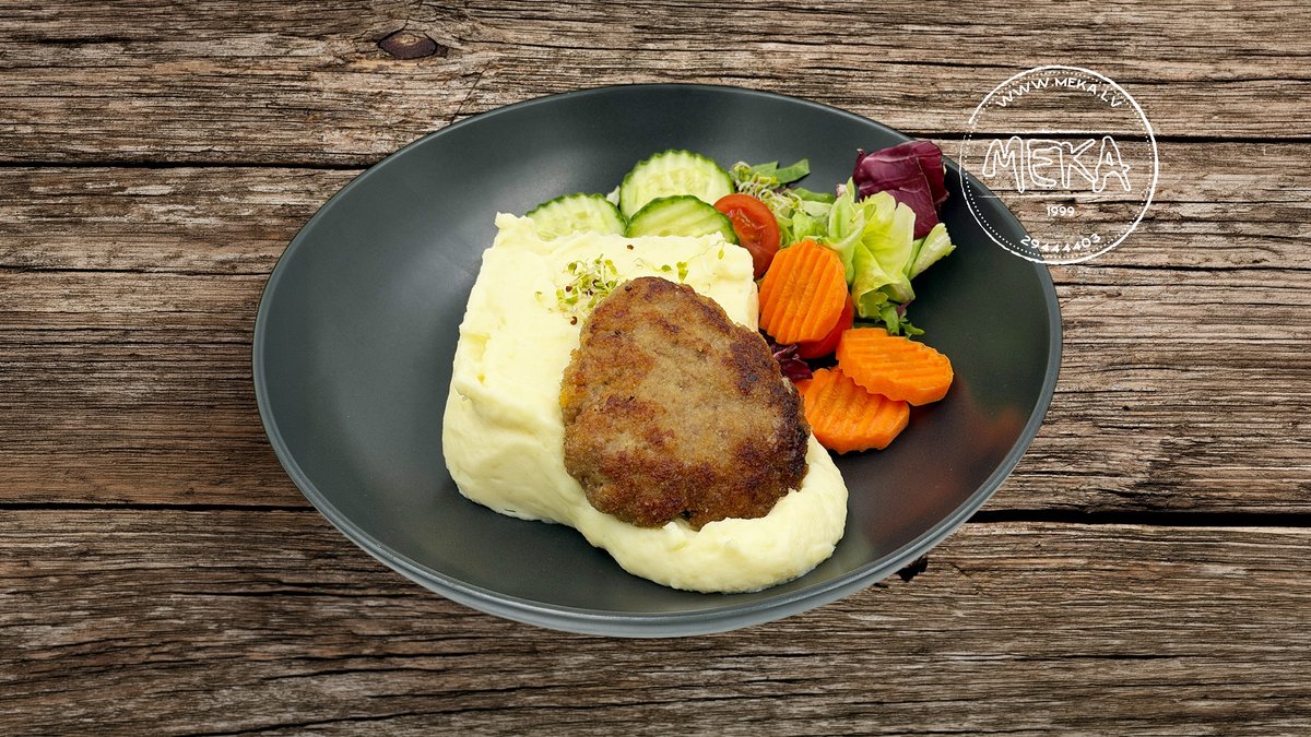 Kotlete ar kartupeļu biezeni un dārzeņiem