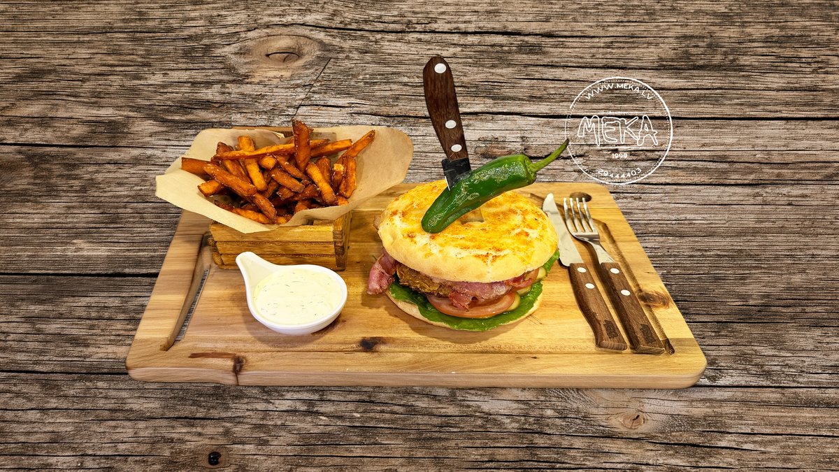 Vistas gaļas burgers ar Čedara sieru