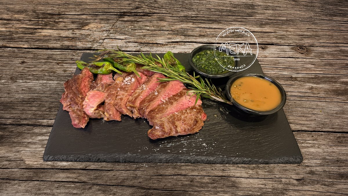 Brazīlijas Ribeye steiks ar Čimičuri un zaļo pipargraudu mērci vidēji cepts