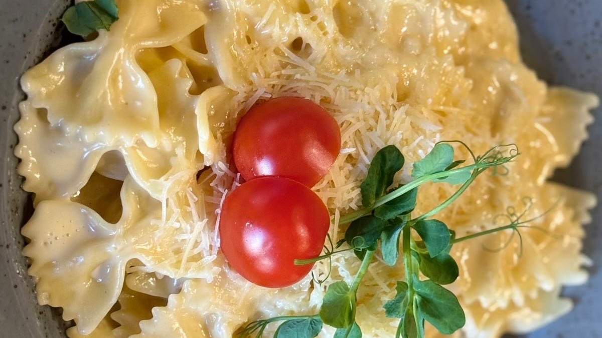 Pasta farfalle ar četriem sieriem (feta, brie, dor blue, parmesan)