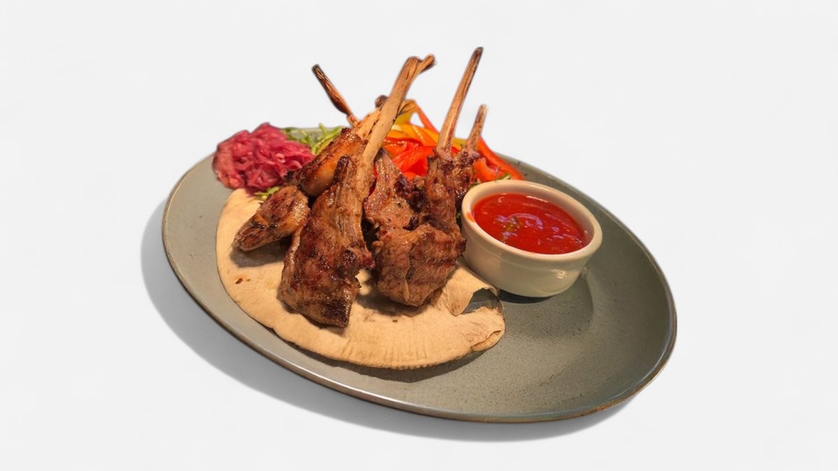 Jēra ribiņas 500 gr ar svaigiem dārzeņiem un lavašu