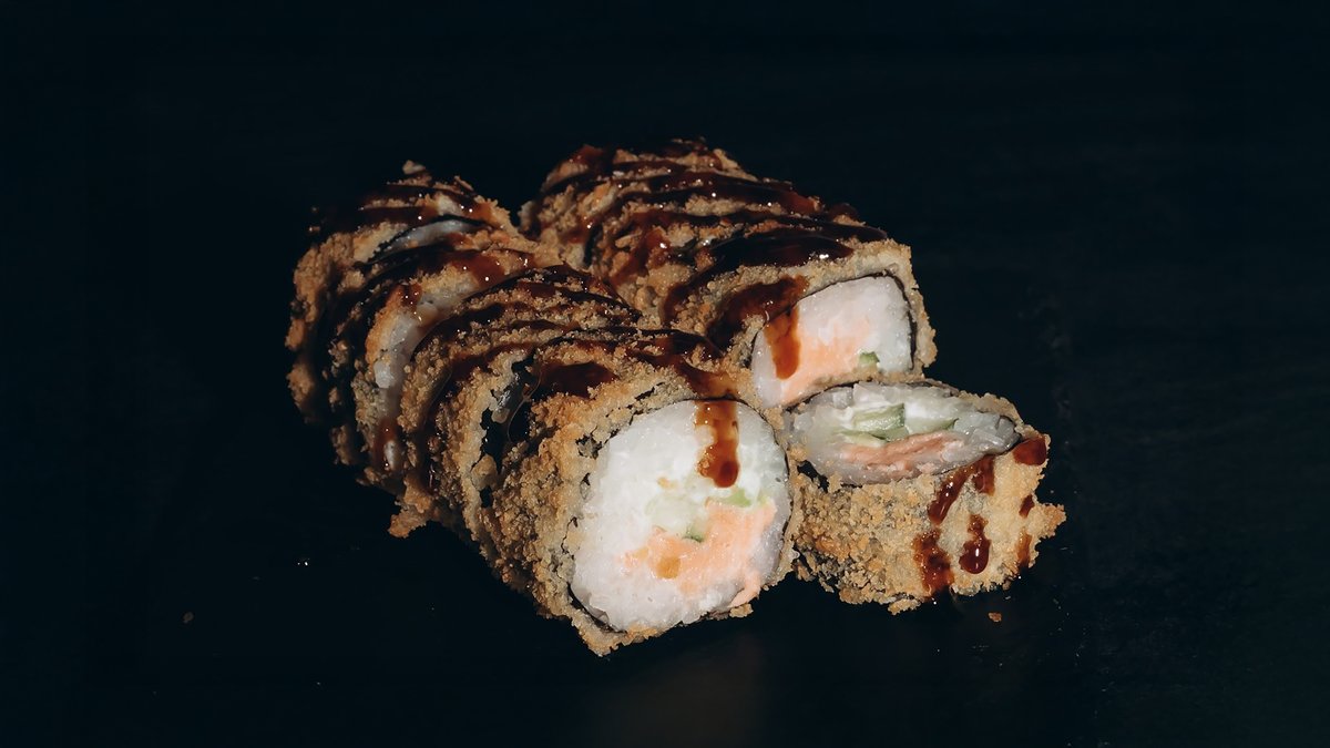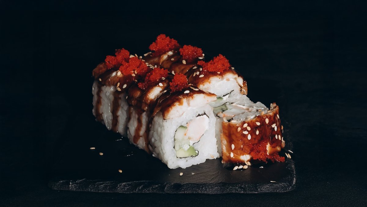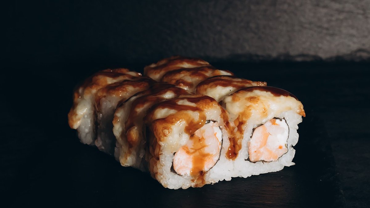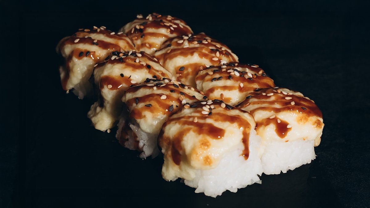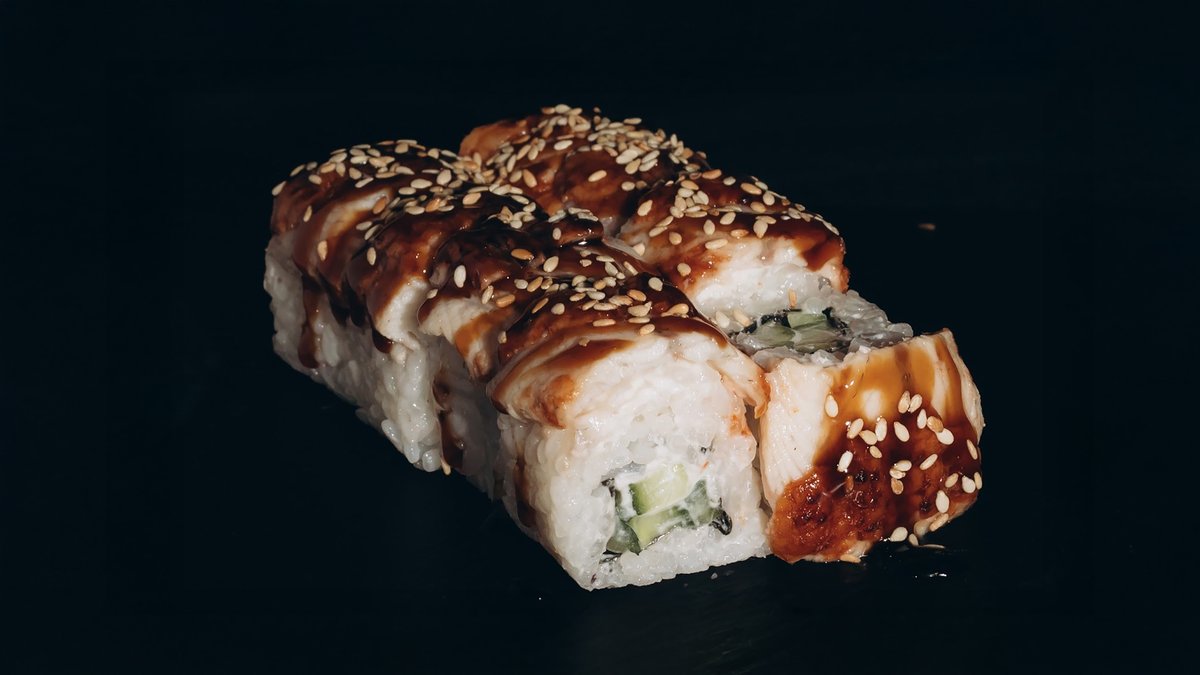 Rīsi, zutis, gurķi, philadelphia, teriyaki mērce, tempura.