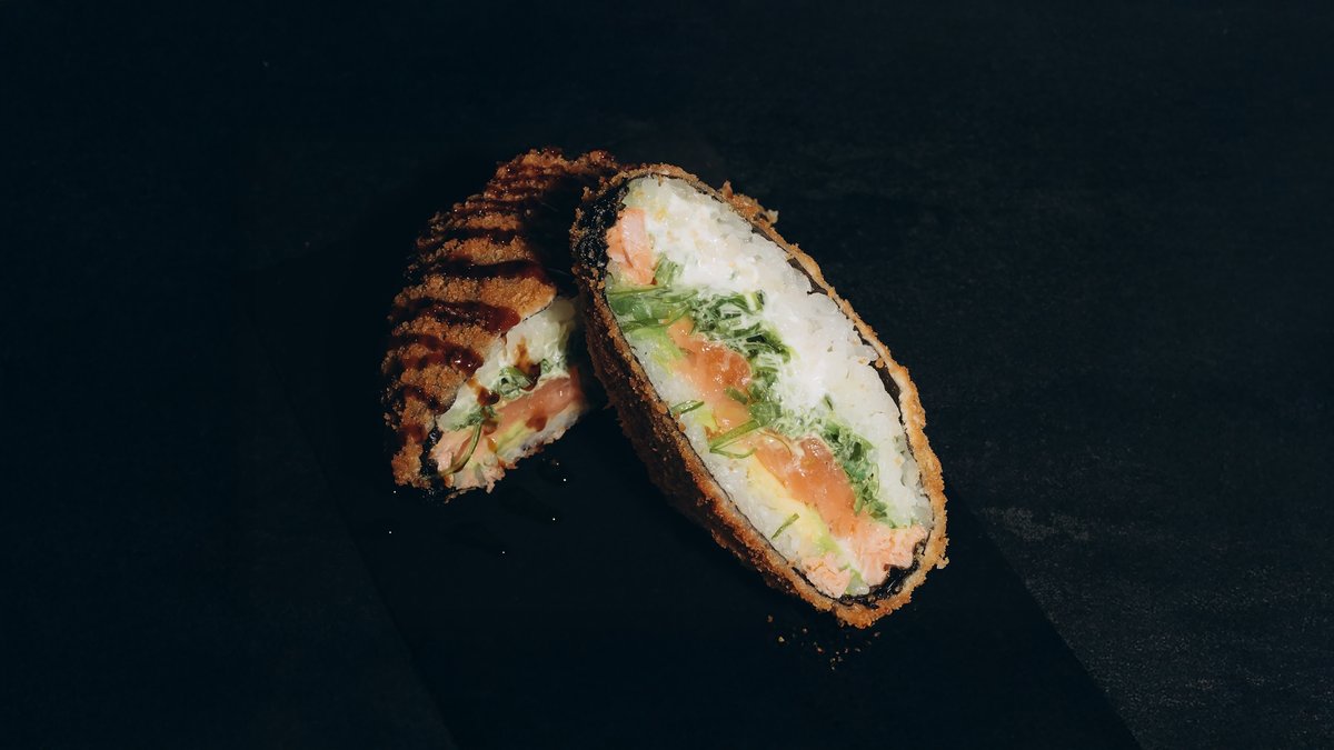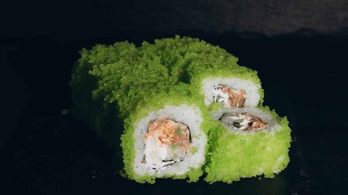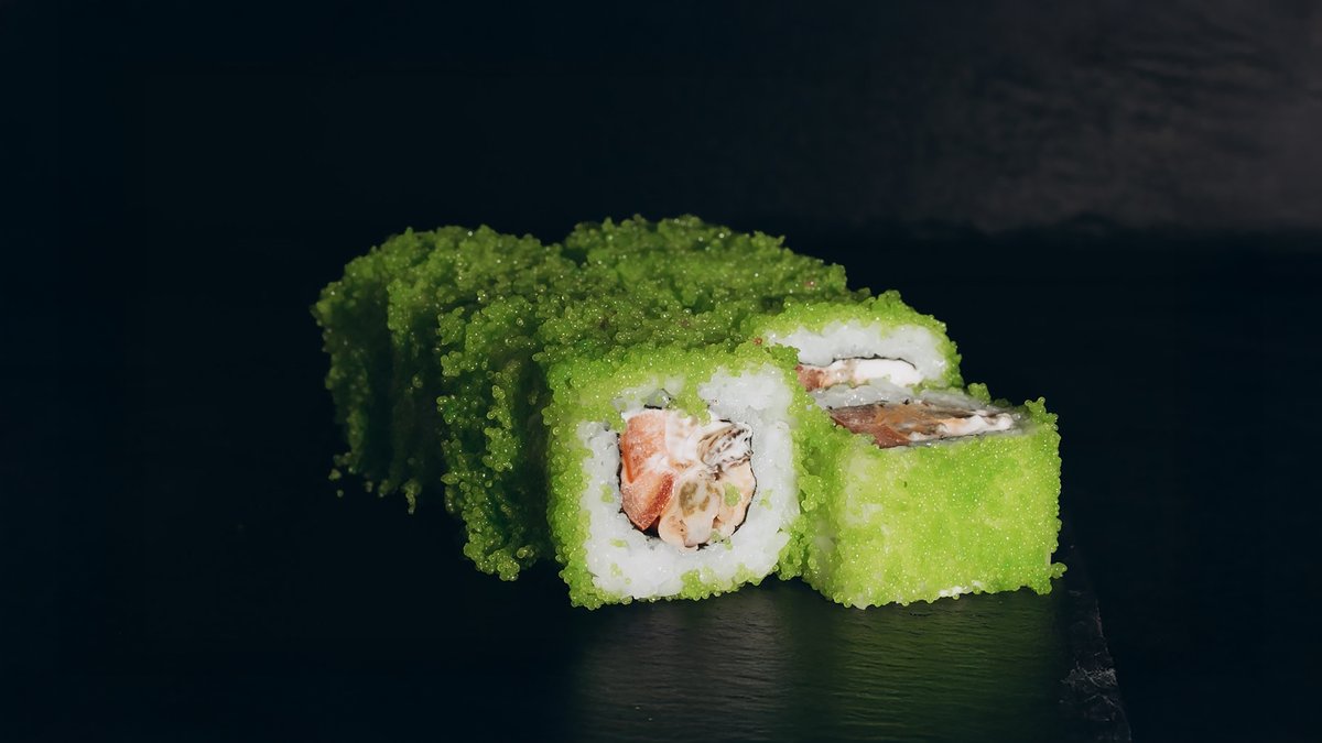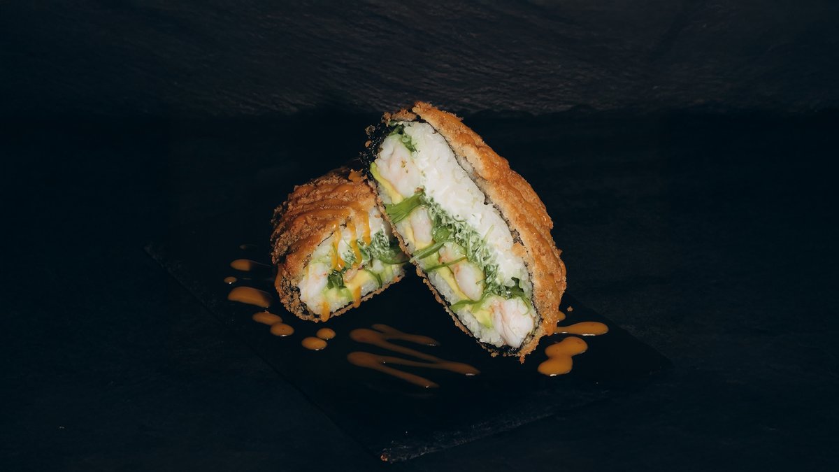 Rīsi, norī lapas ,philadelphia ,tīģergarneles ,wakame ,avokado ,tempura ,mango mērce.