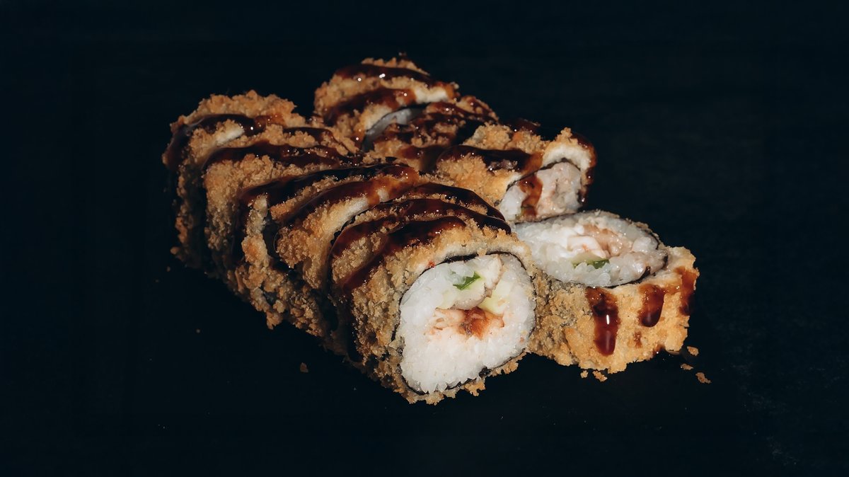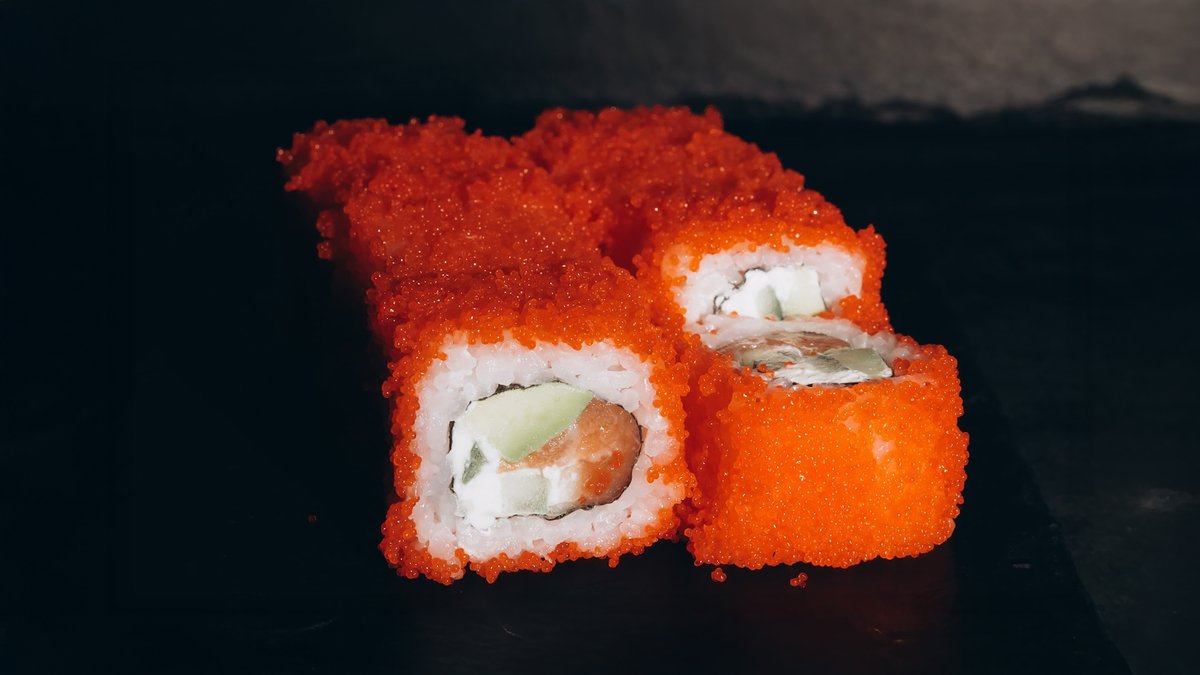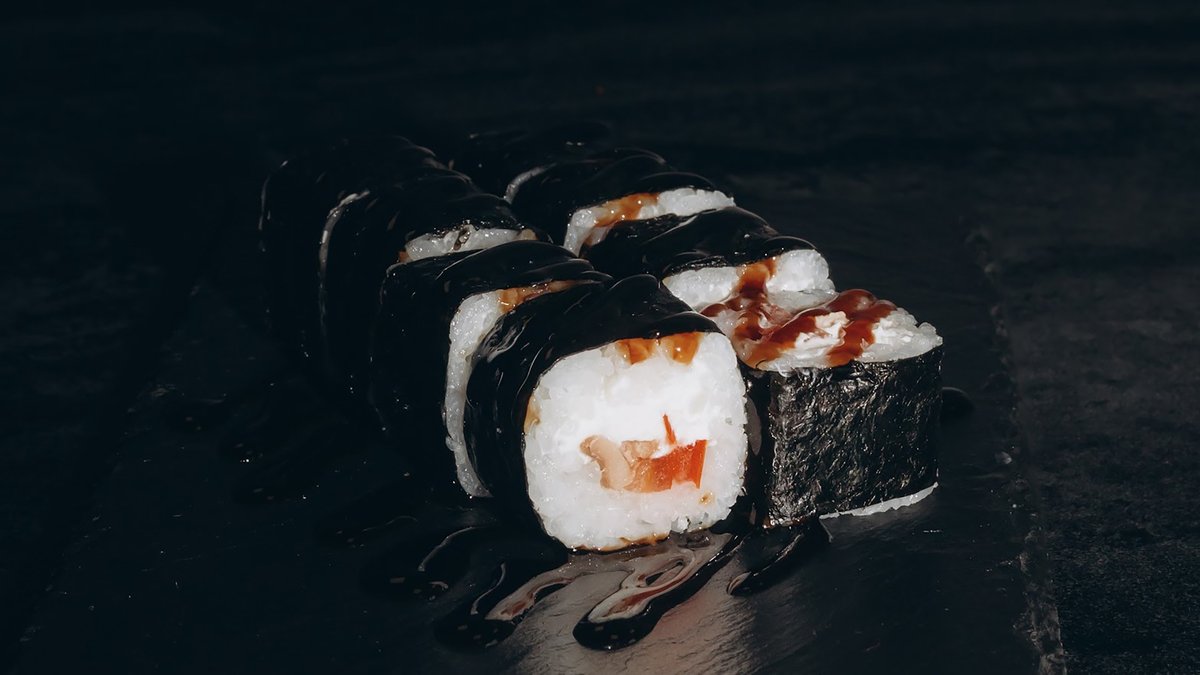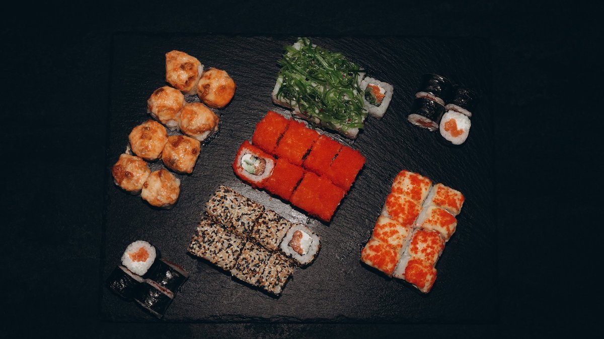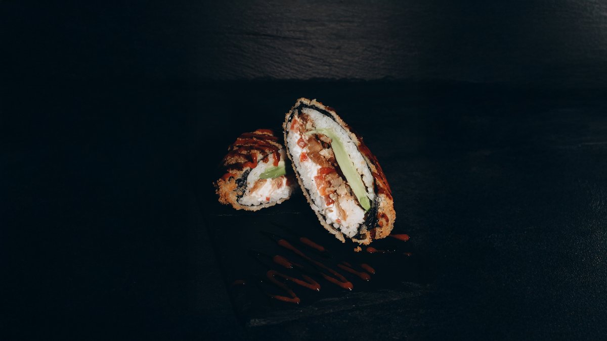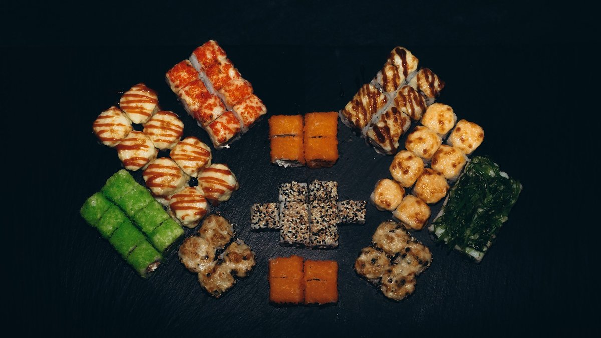 Rīsi, norī lapas, philadelphia, vista, tomāti, avokado, tempura, teriyaki mērce, pikantā mērce