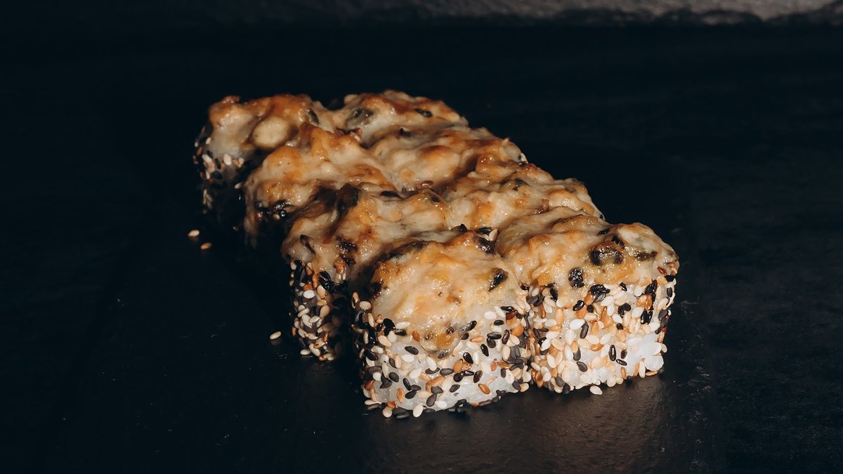 Rīsi, vista, avokado, philadelphia, siera cepurīte, teriyaki mērce, sezams.