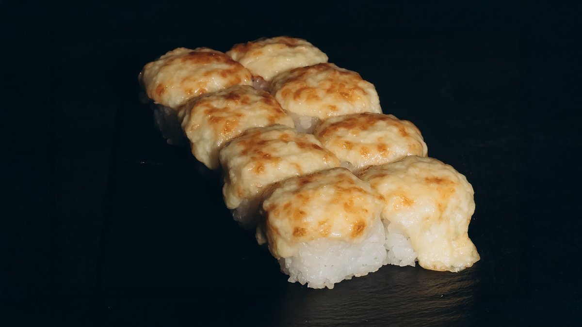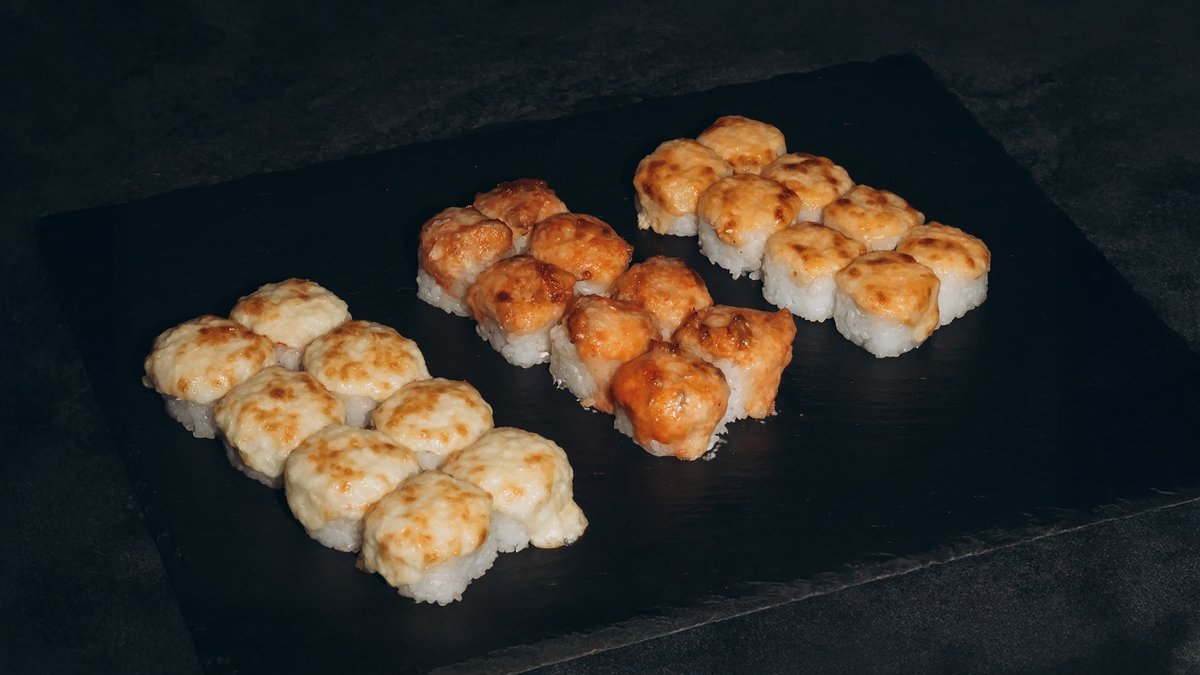 Rosuto Sake Roll – cepts lasis, krēmsiers, siera cepurīte, spicy mērce, masago ikri ** 8 gb. Hot Veggie Cheese – krēmsiers, avokado, tomāts, siera cepurīte, spicy mērce 8 gb. Fried Cheese Hot Maki – cepts siers, krēmsiers, pikantais siers 8 gb.