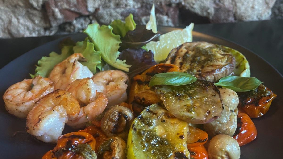 Karaliskas garneles ar grilētiem dārziņiem