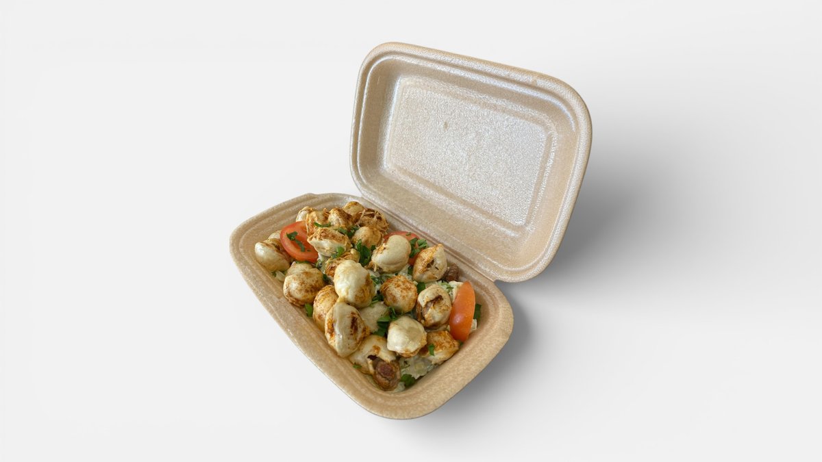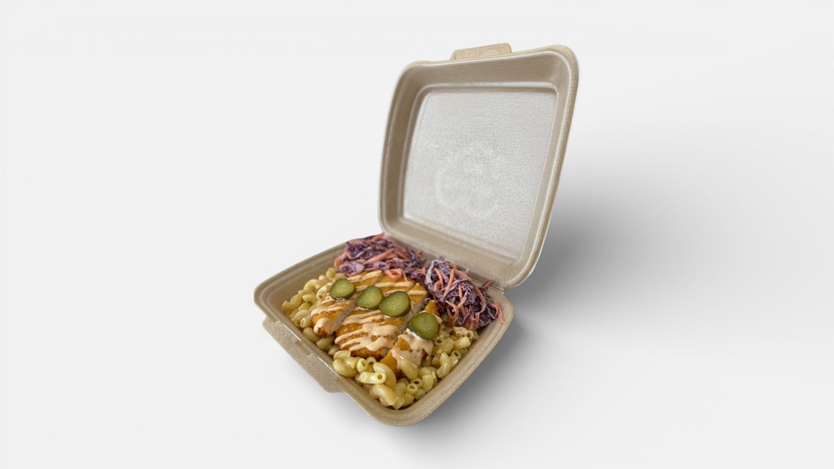 Frī ar plucinātu cūkgaļu, bekonu, kraukšķīgiem sīpoliem & WeKow mērci