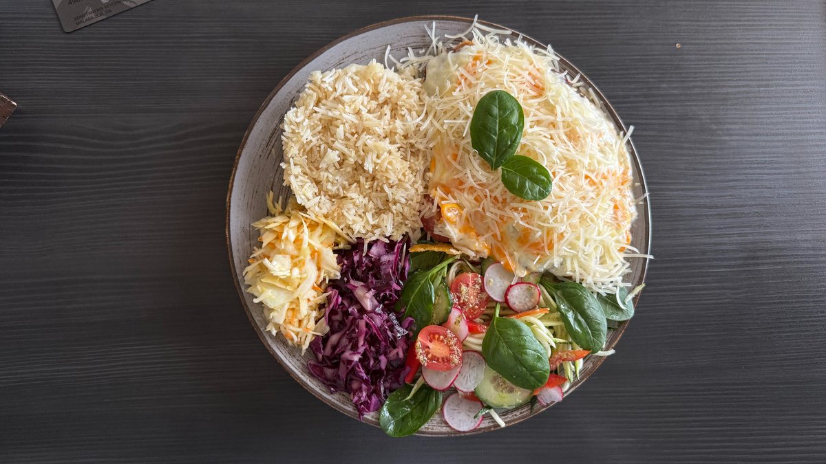 Kebaba gaļa pēc izvēles, piedevas, dārzeņu salāti, mērce