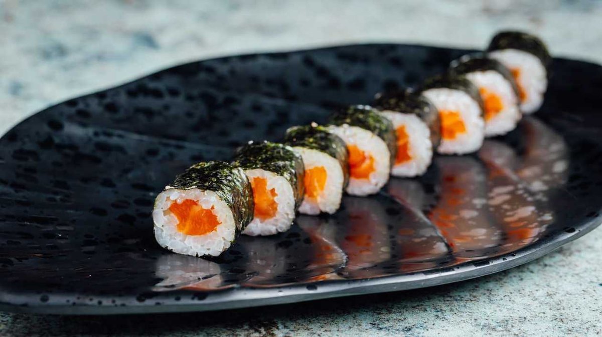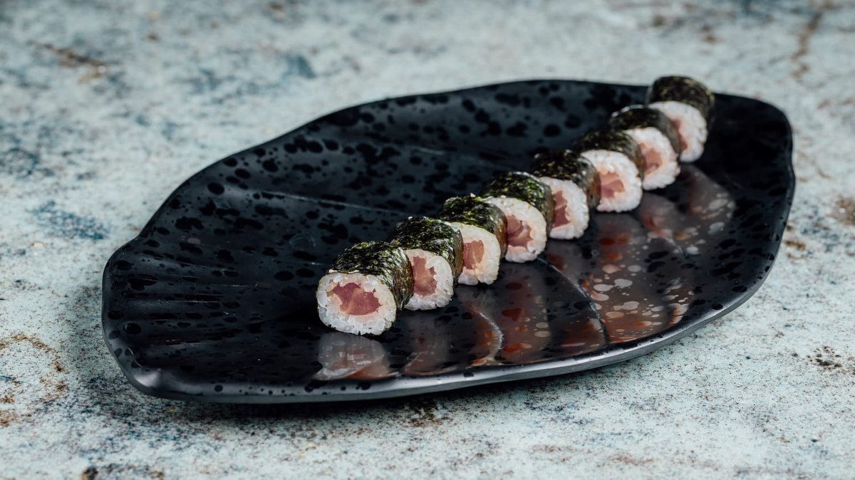 Rullītis ar vienu sastāvdaļu, ietīts nori lapā un rīsu kārtā