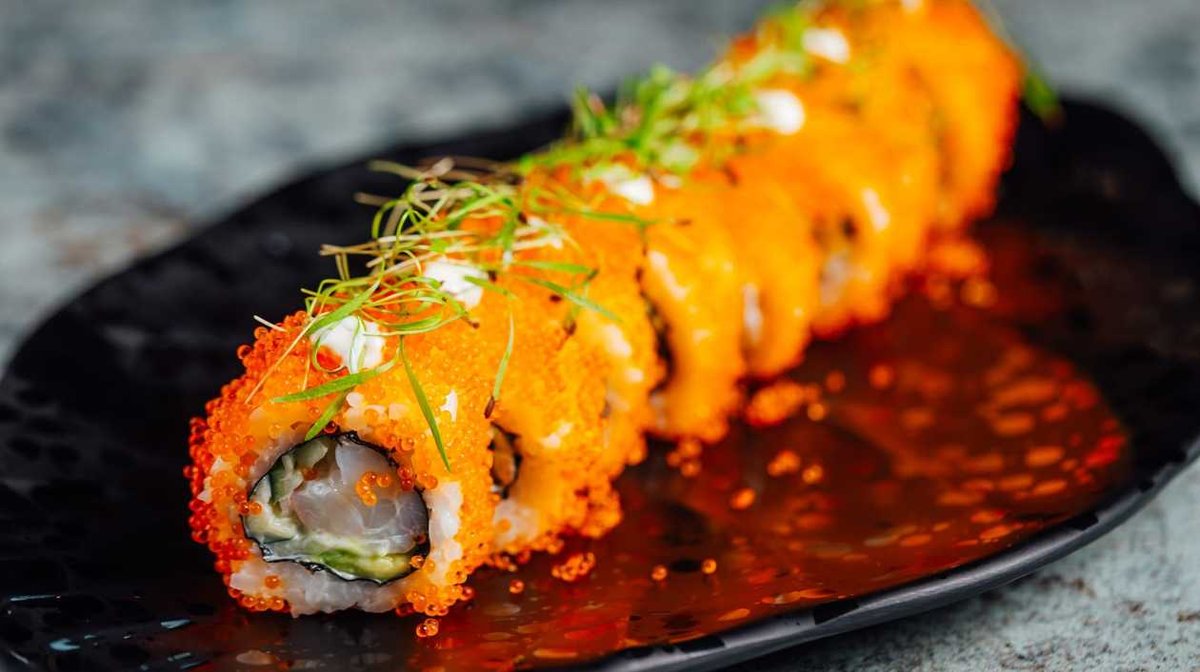 Lasis, gurķis, avokado, krēmsiers, tobiko ikri