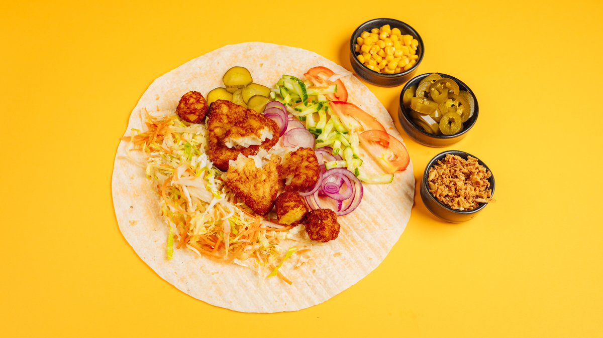 🔥 Zeltainas, kraukšķīgas vistas strēmeles, svaigi kraukšķīgi salāti un tava izvēlētā gardā mērce, viss ietīts maigā, siltā tortiljā!
