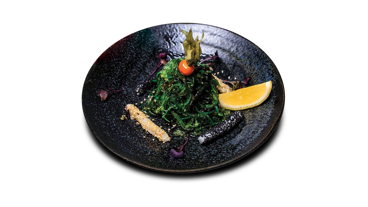 Tīģergarneles; Lasis; Avokado; Salāti Aisberg; Tempura.