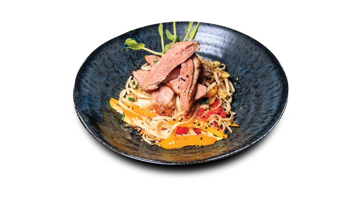 Lasis terijaki mērcē, philadelphia sier, avokado, gurķis, siera mērcē, pikantā mērce, sezams