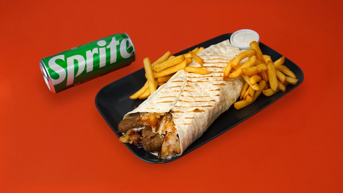 Kebaba Lavašā/Kebabs Maizē + Kartupeļi Frī + Dzēriens